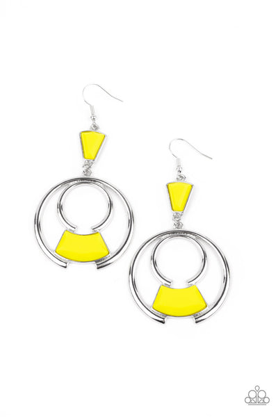 Bold silver circles create an eye-catching frame for a vibrant Illuminating faceted bead. The trendy pendant sways from an Illuminating triangular bead anchor for an embellished finish. Earring attaches to a standard fishhook fitting.
