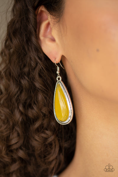 Featuring a tranquil teardrop shape, a glassy stone bead is pressed into an antiqued silver frame for a whimsical look.