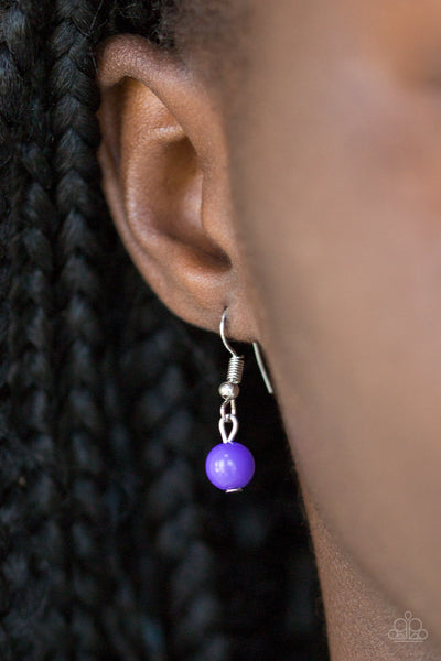 Vivacious purple and dainty silver beads trickle along two shimmery silver chains, creating colorful layers down the chest. Features an adjustable clasp closure.