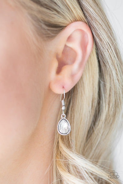 Featuring a regal teardrop cut, a glittery white gem swings from the bottom of a dainty silver chain, creating a timeless pendant below the collar. Features an adjustable clasp closure.