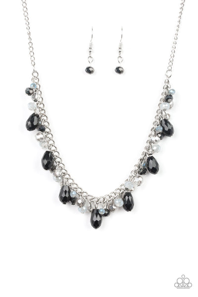 Featuring crystal-like and metallic opaque finishes, mismatched beading swings from a shimmery silver chain, creating a glamorous fringe below the collar. Features an adjustable clasp closure.