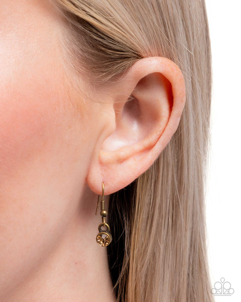 Featuring tea iridescent rhinestone centers, duos of brass flowers with tea and light-colored topaz rhinestone petals bloom atop a brass curb chain below the neckline for a whimsical wallflower display. Additional light-colored topaz rhinestones are framed beside the brass flowers for a bright pop of color. Features an adjustable clasp closure. Due to its prismatic palette, color may vary.