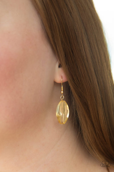 Faceted golden beads and imperfect gold teardrops drip from the bottom of a shimmery gold chain, creating a sassy fringe below the collar. Features an adjustable clasp closure.