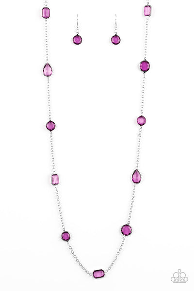 Featuring sleek silver fittings, an array of glassy pink gemstones trickle along a shimmery silver chain for a glamorous look. Features an adjustable clasp closure.