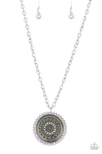 Radiating with shimmery sunburst details, a Martini Olive beaded silver pendant swings from the bottom of a lengthened silver chain for a tribal inspired look. Features an adjustable clasp closure.