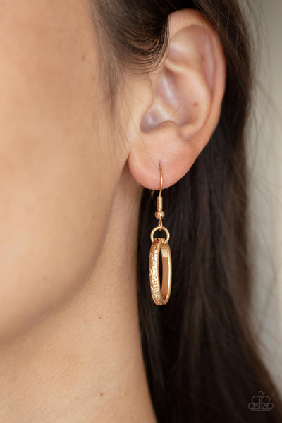Hammered and embossed in geometric detail, pairs of gold links connect with twisting gold oval frames below the collar for an edgy, but refined look. Features an adjustable clasp closure.