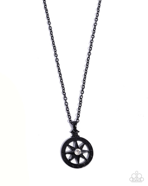 Featuring a white gem center, a black-painted compass pendant glides along a black-painted chain for a noteworthy navigator-inspired display. Features an adjustable clasp closure.