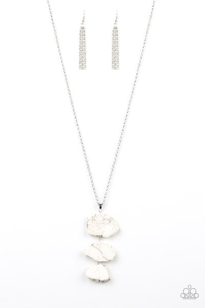 As if chipped off a cliff, pieces of white rock link at the bottom of a lengthened silver chain for an earthy look. As the stone elements in this piece are natural, some color variation is normal. Features an adjustable clasp closure.
