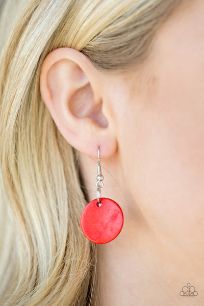 Featuring abstract geometric finishes, mismatched brown wooden beads and fiery red accents are threaded along shiny brown cording. A dramatic geometric bead adorns the center, creating a bold summery look below the collar. Features a button loop closure.