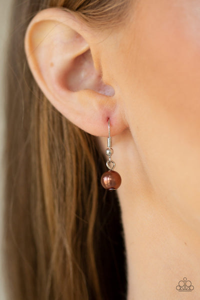 A refined collection of pearly brown beads and glassy crystal-like beads link across the chest for a glamorous look. Features an adjustable clasp closure.