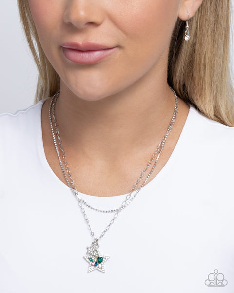 A white rhinestone-bordered silver star, exploding with multicolored and iridescent rhinestones and gems in varying sizes is joined by a silver star dusted with white rhinestones, gliding along a silver paperclip chain below the neckline for an out-of-this-world vibe. Pressed in pronged silver fittings, a strand of white rhinestones shimmers above the starry display, creating an additional refined layer. Features an adjustable clasp closure. Due to its prismatic palette, color may vary.