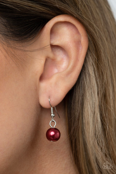 A bubbly collection of shiny silver and pearly red beads cluster along a shimmery silver chain below the collar, creating a vivacious fringe. Features an adjustable clasp closure.