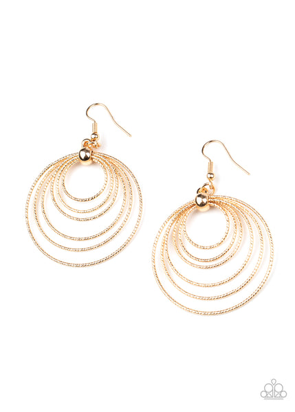 Featuring shimmery diamond cut texture, dainty silver hoops are threaded through the center of a beaded fitting, rippling out into a dizzying lure. Earring attaches to a standard fishhook fitting.