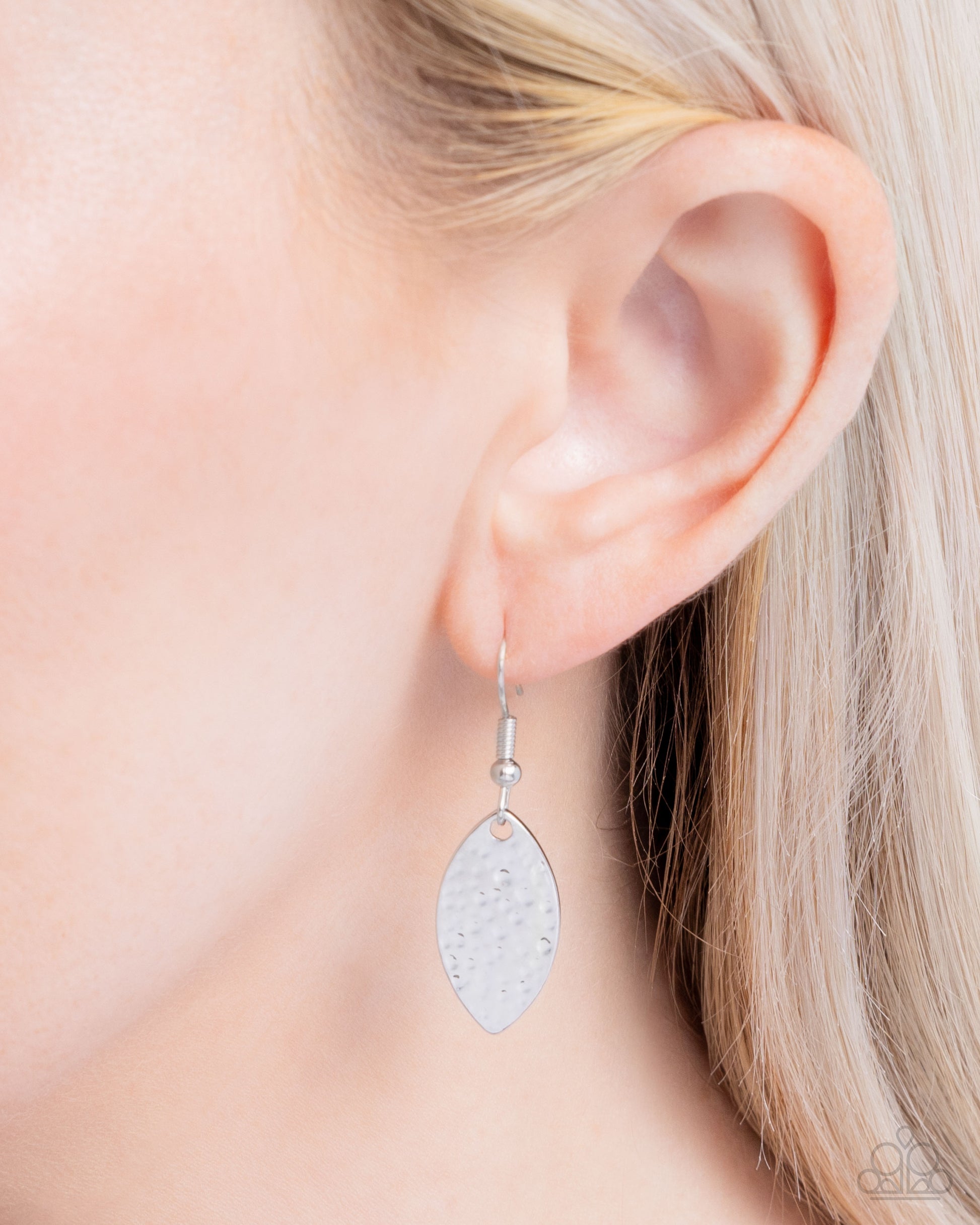 Hammered with a dotted motif, dainty silver leaf frames swing from the bottom of a glistening silver chain below a diamond-cut textured silver chain, creating a whimsical layered fringe. Features an adjustable clasp closure