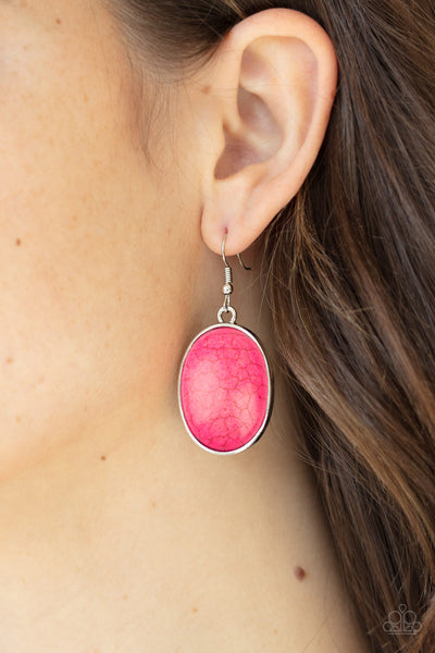 Chiseled into a serene oval, a vivacious pink stone is pressed into a sleek silver frame for a seasonal flair. Earring attaches to a standard fishhook fitting.