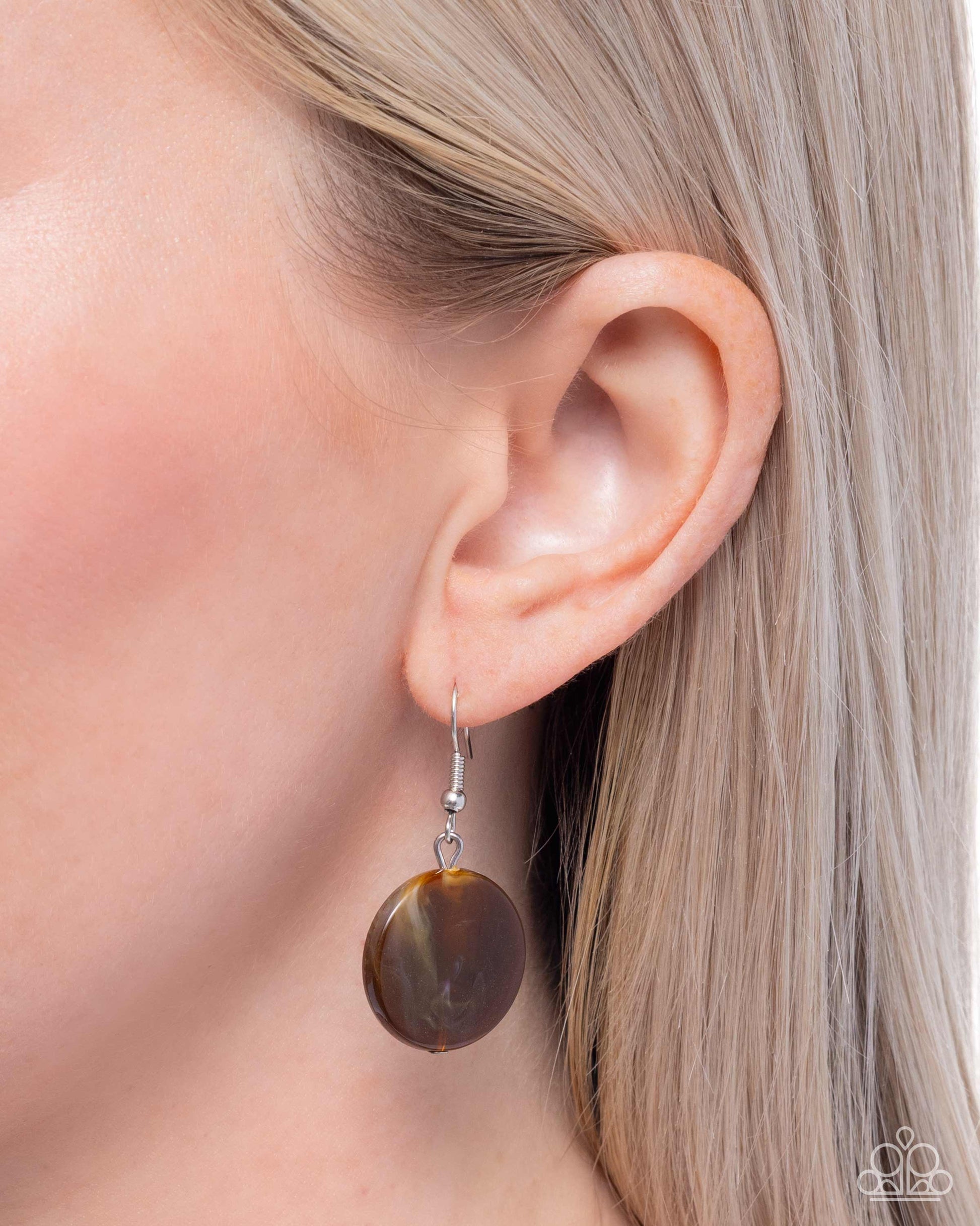 Infused along a thin-textured silver chain, a collection of hammered silver discs sporadically interrupt glossy brown-swirled discs in varying shades, alternating with dainty silver beads below the neckline for a pop of eye-catching color and texture. Features an adjustable clasp closure.