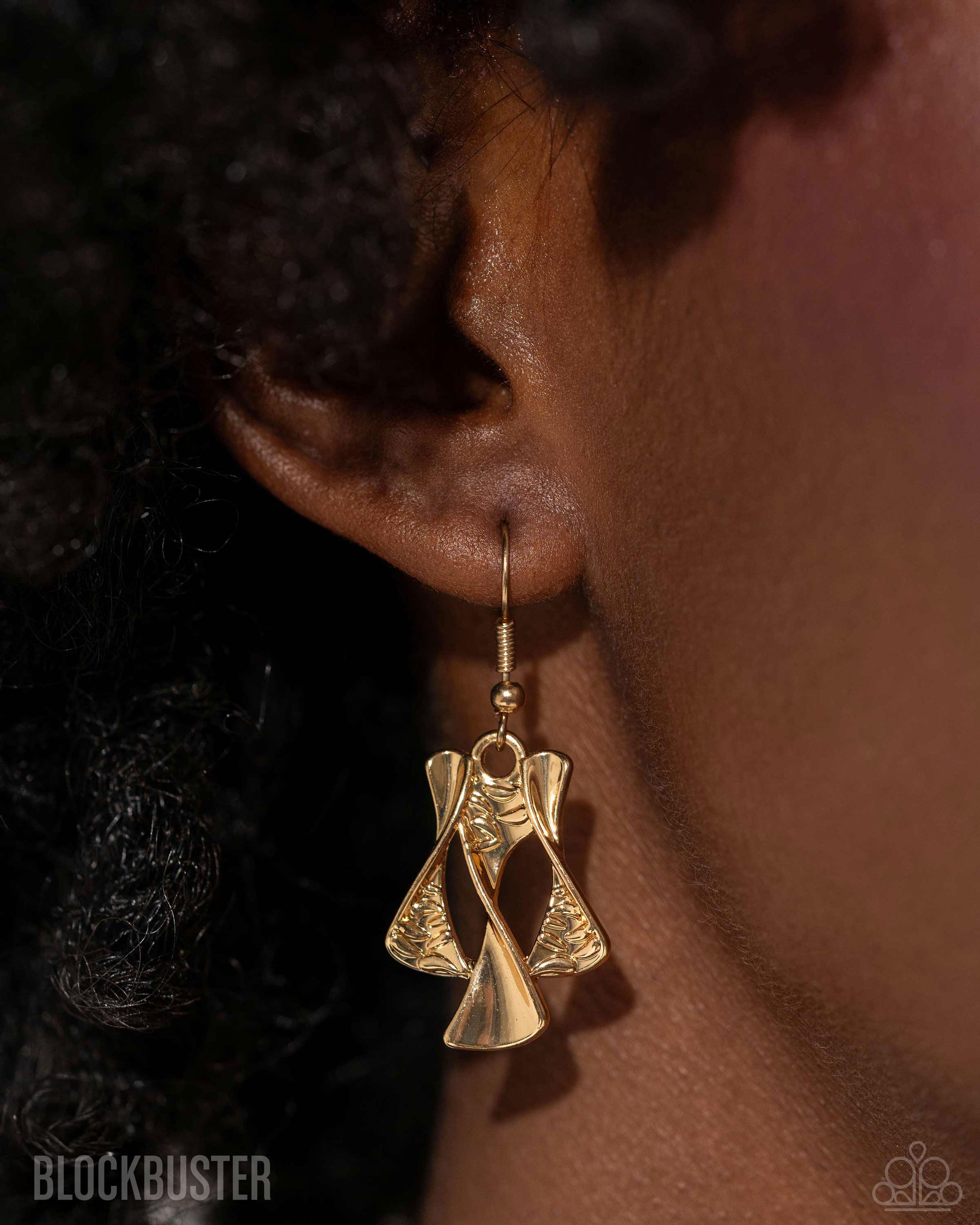 Embellished along a chunky gold chain, twisted hourglass-like shapes, half hammered in texture gradually increase in size as they get to the center of the design for an elegantly esteemed look. Dainty light peach rhinestones are randomly interspersed along the shapes, adding dazzling depth to the design. Features an adjustable clasp closure.